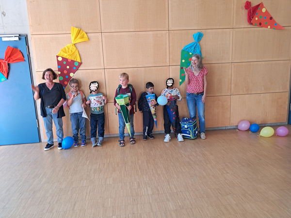 Der große Tag für Said, Leven, P., L. und Mykhailo ist da: 10:30Uhr werden unsere Erstklässler in unserer Aula (Turnhalle) begrüßt. Schulleiterin Inken Kraft stellt die Lehrerinnen Frau Holzmann-Zieger und Frau Landwehr vor. Untermalt wird das wie immer mit Gebärdensprache. Herzlich Willkommen!